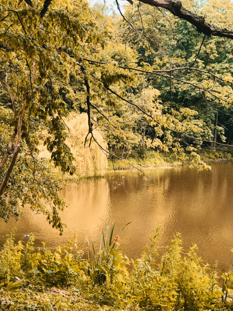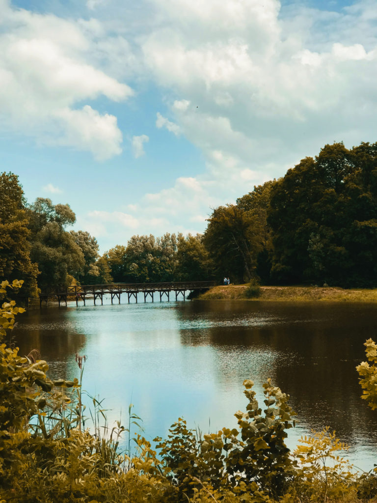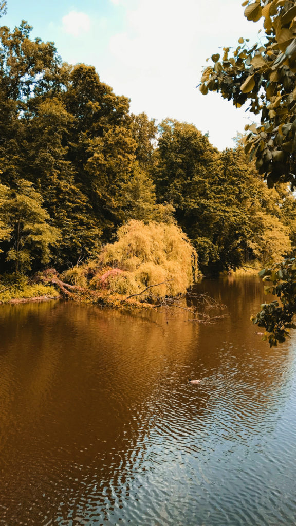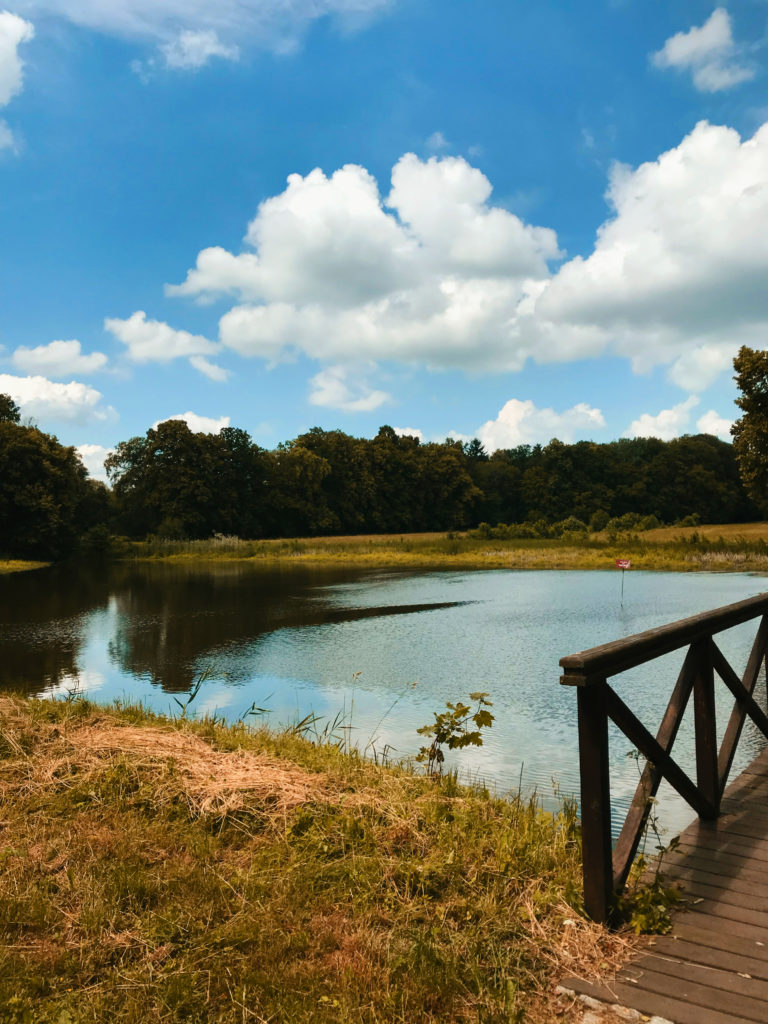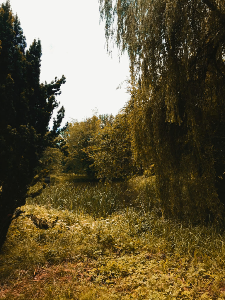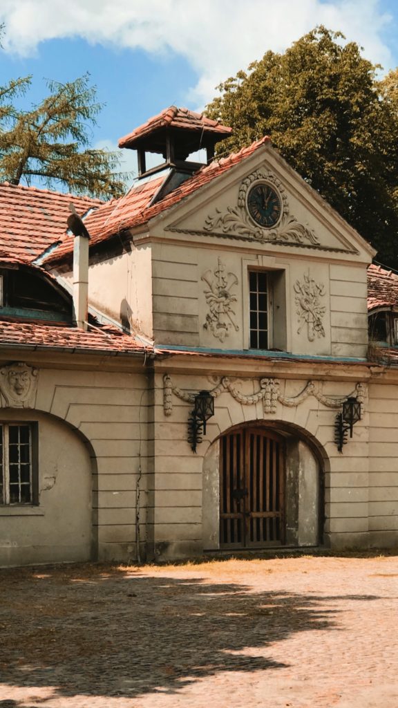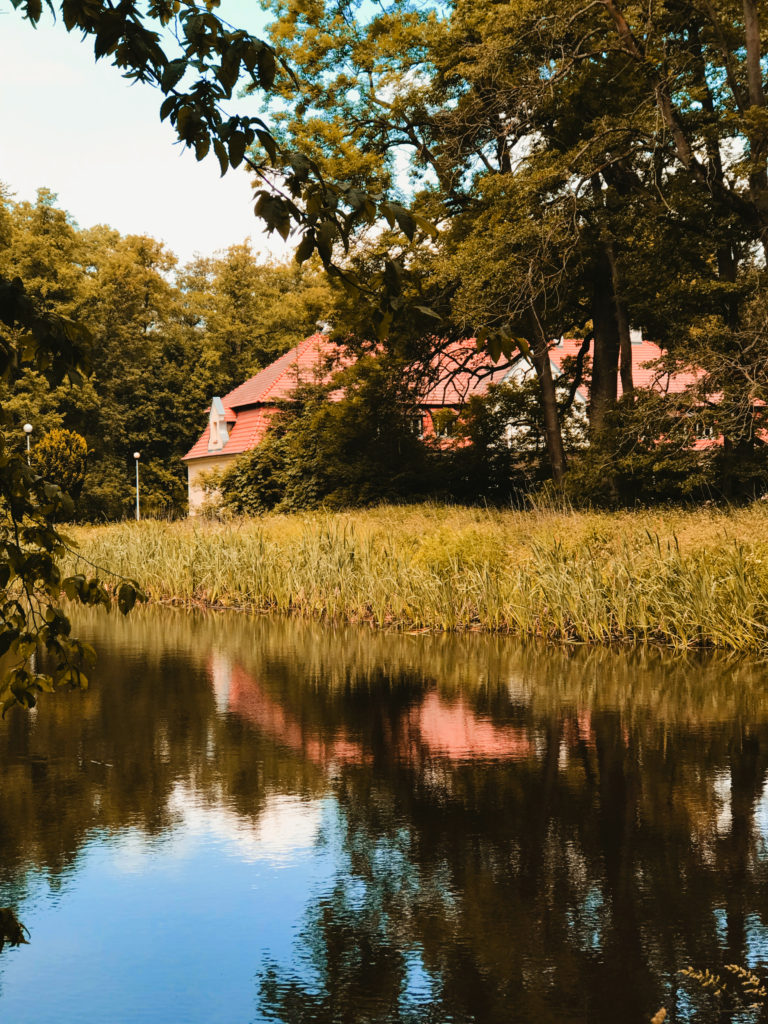 No i tak – mamy tam po lewej stajnie i obok koniki, które przyjaźnie akceptują przewijających się gości, a po prawej w Wozowni znajduje się restauracja. Jak już skończymy podziwiać architektoniczną perełkę, to pora wybrać się na spacer po trochę zapuszczonym, ale nadal pięknym parku za pałacem. Są tu stawy, mostki, rzeczki, genialne latarnie, których zdjęcia zapomniałem zrobić… Przechadzka po parku to genialna odskocznia od miejskiej dżungli. Podobnie jak pałac, park najlepsza czasy też ma już za sobą, ale nadal widoczne są jego założenia i z łatwością odnajdziecie ścieżki oraz przepiękne aleje drzew. Zabierzcie tylko ze sobą coś na owady gryzące. Mnie tam pokąsały trochę. Ciepła aura i stawy dookoła powodują, że latających uprzykrzaczy życia może być tam sporo. Dreptając po parku warto dojść do Bażantarni – jest to dworek wybudowany nieco później niż pałac. Stoi trochę samotny w przyjemnym otoczeniu, pośrodku parku. Genialna oaza spokoju i ciszy pośród natury.